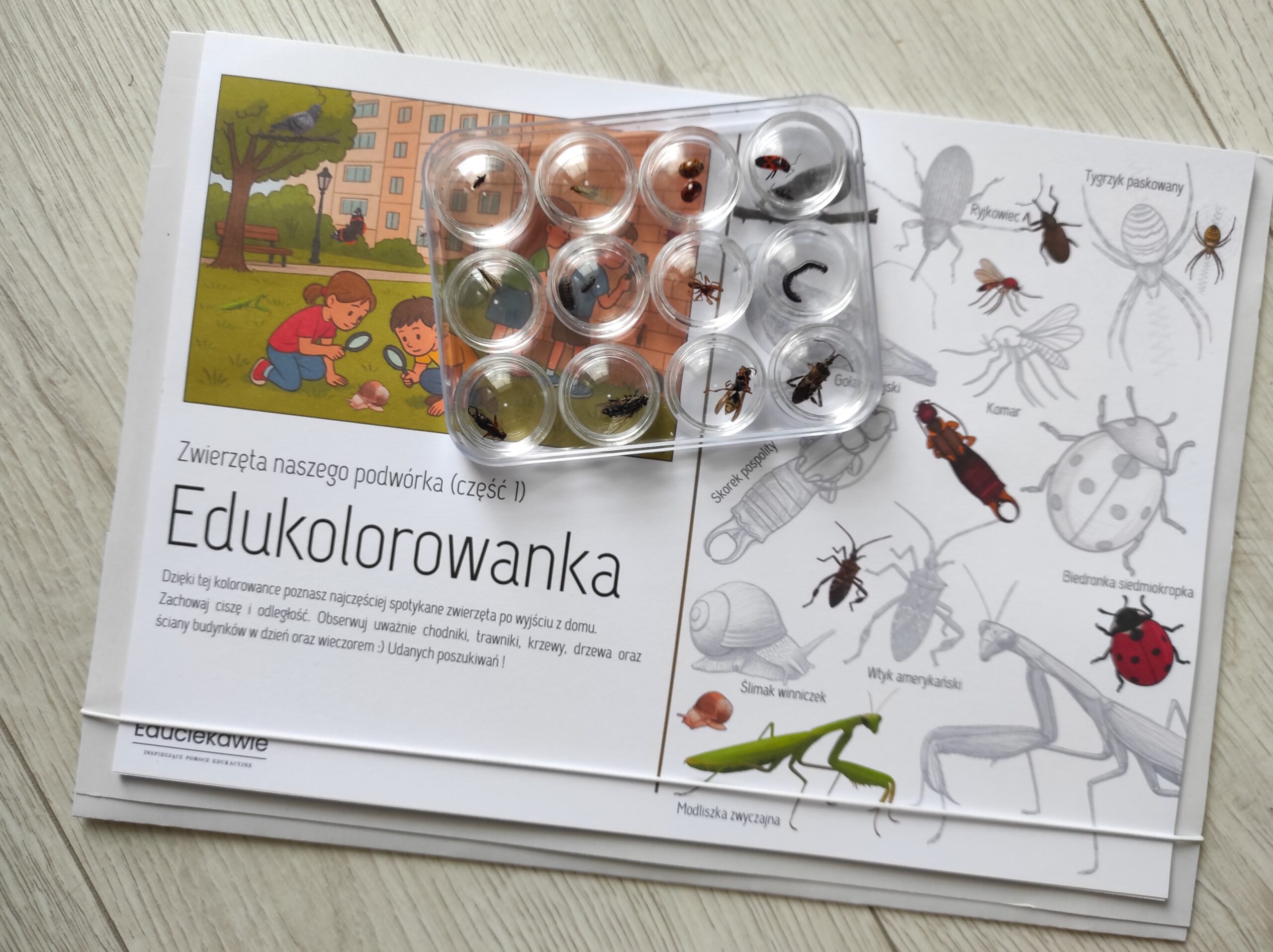 Dostępne 2 części edukolorowanki: część 1 (z modliszką na okładce)i część 2 (lisem na okładce).