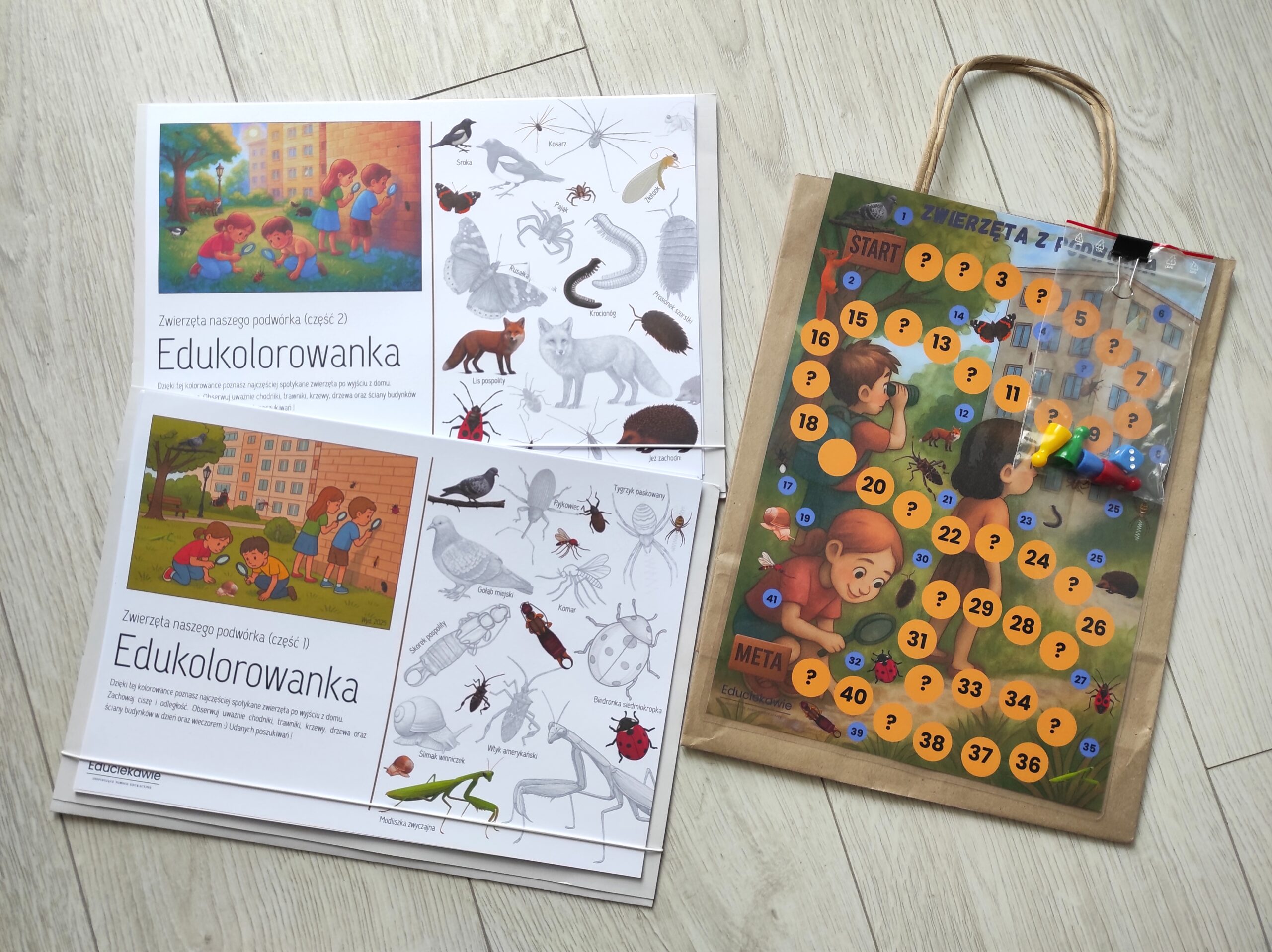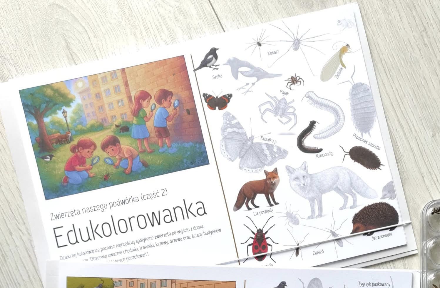 Dostępne 2 części edukolorowanki: część 1 (z modliszką na okładce)i część 2 (lisem na okładce).