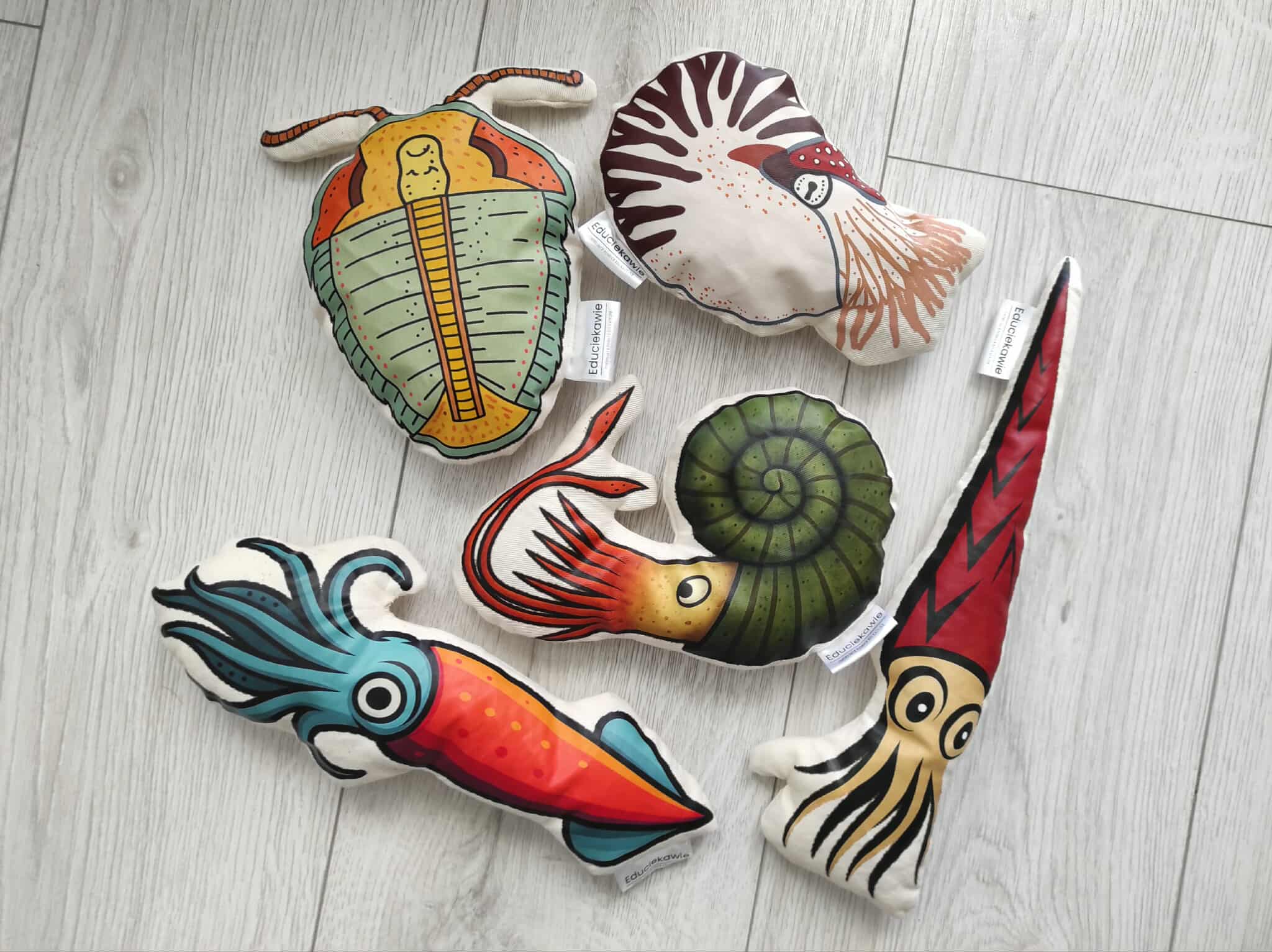 Maskotki paleontologiczne, nadruk – zestaw.